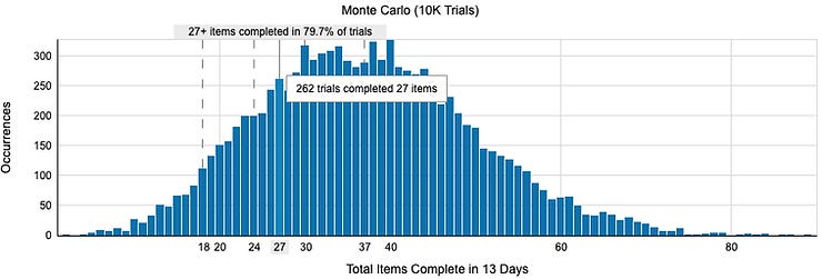 Or the teams apply Monte Carlo simulations to predict what the chances are that a set of PBIs are done on a certain day or how many PBIs they’ll manage in a given time.